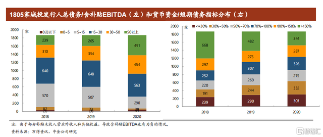 為什么說城投存在預(yù)算軟約束、甚至被戲稱做“最大的僵尸企業(yè)和永續(xù)債券發(fā)行主體”?從財(cái)務(wù)指標(biāo)來看,如果一家公司總債務(wù)/EBITDA(稅息折舊及攤銷前利潤,是Earnings Before Interest, Taxes, Depreciation and Amortization的縮寫,即未計(jì)利息、稅項(xiàng)、折舊及攤銷前的利潤。)在15~20倍,基本可以將其定義為僵尸企業(yè)。因?yàn)槿绻凑?%的利息計(jì)算,總債務(wù)/EBITDA為20倍就意味著一年現(xiàn)金流只夠償還利息,本金則需要一直滾續(xù)。近幾年,受疫情期間寬信用政策等因素的影響,城投平臺債務(wù)明顯增長,公募類債券發(fā)行人中,總債務(wù)/EBITDA(含補(bǔ)貼)超過30倍以上的企業(yè),從兩年前的400~600家,上升到800家。這類企業(yè)單靠自己的話,就只能被算作是“僵尸企業(yè)”