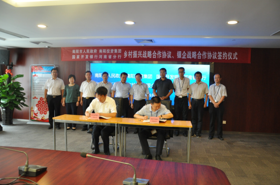 南陽市政府、南陽投資集團(tuán)有限公司與國(guó)家開發(fā)銀行河南省分行簽訂金融戰(zhàn)略合作協(xié)議9月2日,南陽市政府、南陽投資集團(tuán)與國(guó)家開發(fā)銀行河南省分行在鄭州舉行鄉(xiāng)村振興戰(zhàn)略合作協(xié)議、銀企戰(zhàn)略合作協(xié)議簽約儀式。南陽市委常委、常務(wù)副市長(zhǎng)景勁松,南陽市政府副秘書長(zhǎng)、市政府辦公室主任司馬恒,南陽市農(nóng)業(yè)農(nóng)村局局長(zhǎng)王宛楠,南陽市金融工作局局長(zhǎng)程治敏,南陽投資集團(tuán)有限公司黨委書記、董事長(zhǎng)楊振中,黨委委員、總經(jīng)理高增偉,黨委委員、副總經(jīng)理馮軍一行與國(guó)家開發(fā)銀行河南省分行副行長(zhǎng)張弛,客戶七處處長(zhǎng)羅文濤及相關(guān)處室同志共同出席座談會(huì)議并簽約。
