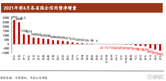 2021年前4月,融資分化進(jìn)一步加劇,山西、天津、河北凈流出規(guī)模均超400億元,云南、河南凈流出規(guī)模也超200億元。