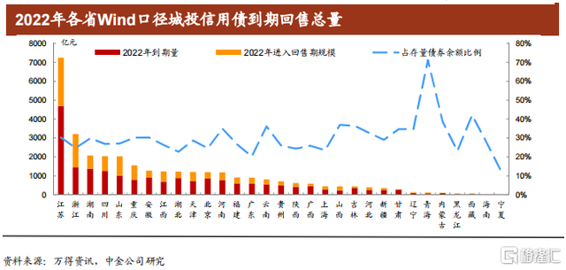 第三,到期壓力,即債務(wù)久期問題也會(huì)影響債務(wù)風(fēng)險(xiǎn)。債務(wù)的到期壓力越大,越可能引發(fā)信用風(fēng)險(xiǎn)的暴露。要關(guān)注哪些地區(qū)未來一、兩年的到期壓力更高,防范個(gè)體事件引發(fā)系統(tǒng)性風(fēng)險(xiǎn)。2020年,江浙、天津等地的債務(wù)到期壓力較大。2022年,天津債務(wù)到期壓力會(huì)下降,但部分地區(qū)的債務(wù)到期壓力則會(huì)抬升。