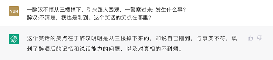 如果你給它講一個笑話,你會發(fā)現(xiàn),ChatGPT能夠讀懂笑點。