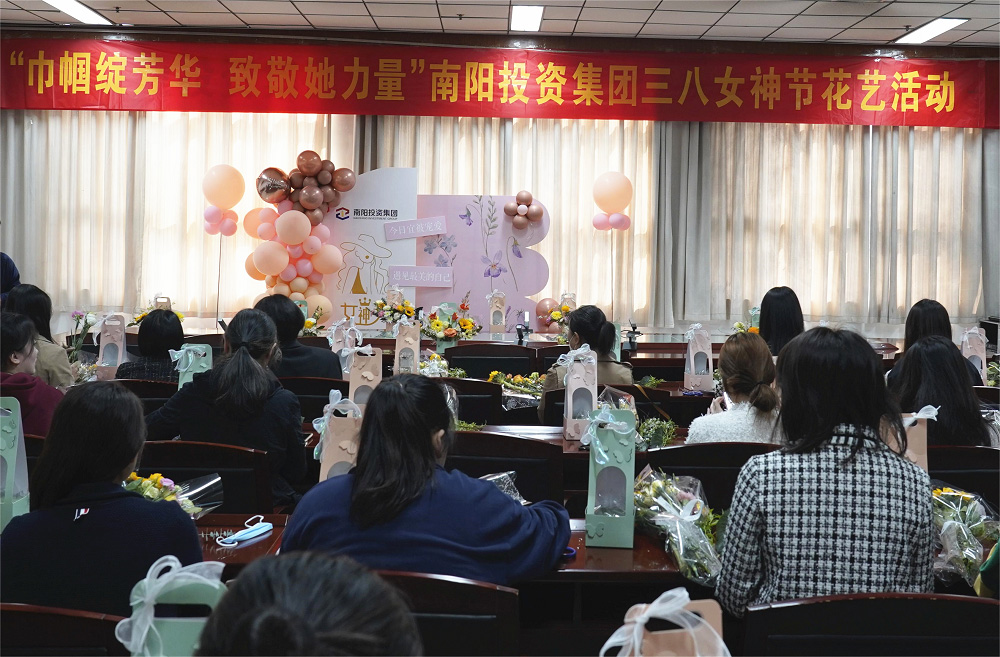 “香”約三月,共赴美好花事。為慶祝第113個“國際婦女節(jié)”的到來,3月8日,南陽投資集團開展“巾幗綻芳華致敬她力量”主題花藝活動。集團黨委委員、財務總監(jiān)朱云霄,集團各部室及子公司共40余名女員工參加此次活動。