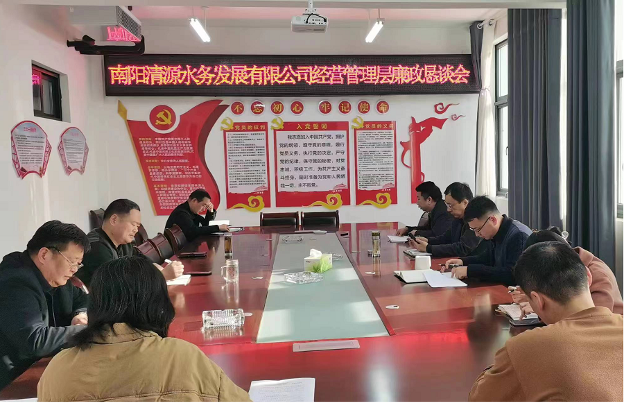 3月29日上午,集團黨委委員、副總經(jīng)理、清源公司董事長崔天杰組織南陽清源水務(wù)發(fā)展有限公司經(jīng)營管理層召開廉潔教育懇談會。