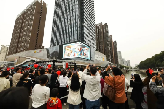 隨著“南陽(yáng)之眼”的360廣場(chǎng)裸眼3D大屏點(diǎn)亮,南陽(yáng)市委市政府的節(jié)日祝福在大屏上播出時(shí),現(xiàn)場(chǎng)群眾一片歡呼雀躍。紅色的飄帶漫天飛舞、航天員從太空送來?yè)肀А㈧趴岬某壬珯C(jī)甲將頭探出屏幕……南陽(yáng)裸眼3D屏點(diǎn)亮視覺盛宴,人們紛紛舉起手機(jī)拍照合影,留下這歡樂美好記憶。