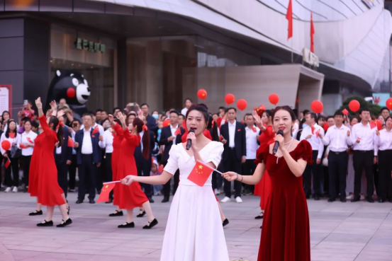 10月1日,南陽(yáng)市宛城區(qū)建設(shè)路與人民路交叉口的360廣場(chǎng)摩根店,一派節(jié)日繁華。隨著歌曲《我和我的祖國(guó)》經(jīng)典旋律響起,現(xiàn)場(chǎng)的群眾手舉國(guó)旗、載歌載舞,用嘹亮的歌聲和幸福的舞蹈來表白他們對(duì)祖國(guó)的節(jié)日祝福。