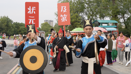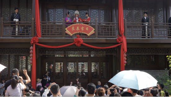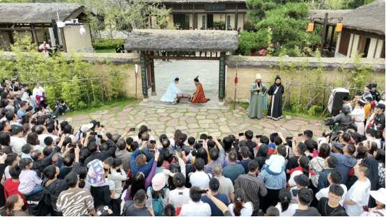 諸葛亮、劉備、張飛、關(guān)羽等幾十位三國人物“穿越而來”;電視里的捶丸、拋繡球招親、科考照進(jìn)現(xiàn)實(shí)?!秳淦迳纭贰ⅰ鄂跸s燈謎鋪》、《草廬對》、《諸葛斗志堂》、《良辰吉日》、《狀元及第》等真人NPC互動游戲,花樣繁多、玩法新奇。在園區(qū)體驗(yàn)一把古代高爾夫、考上一回狀元、接上個繡球,三國人物與游客一起互動對話,氛圍感拉滿,一鍵穿越回古代。