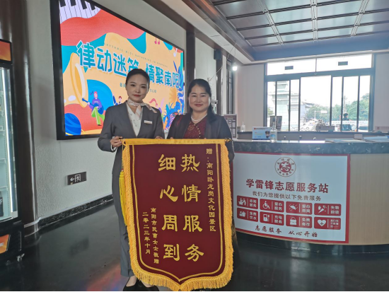 游客曹女士的孩子在景區(qū)游玩時,頸部被蜜蜂蟄到,游客服務(wù)中心得知后,第一時間與醫(yī)務(wù)室醫(yī)生共同趕往事發(fā)地點(diǎn),進(jìn)行緊急處理,又將游客帶回醫(yī)務(wù)室進(jìn)一步處理。曹女士對景區(qū)游客服務(wù)中心工作人員宋昌匯的熱情服務(wù)和幫助給與高度贊許,制作了錦旗贈于景區(qū)表示謝意。