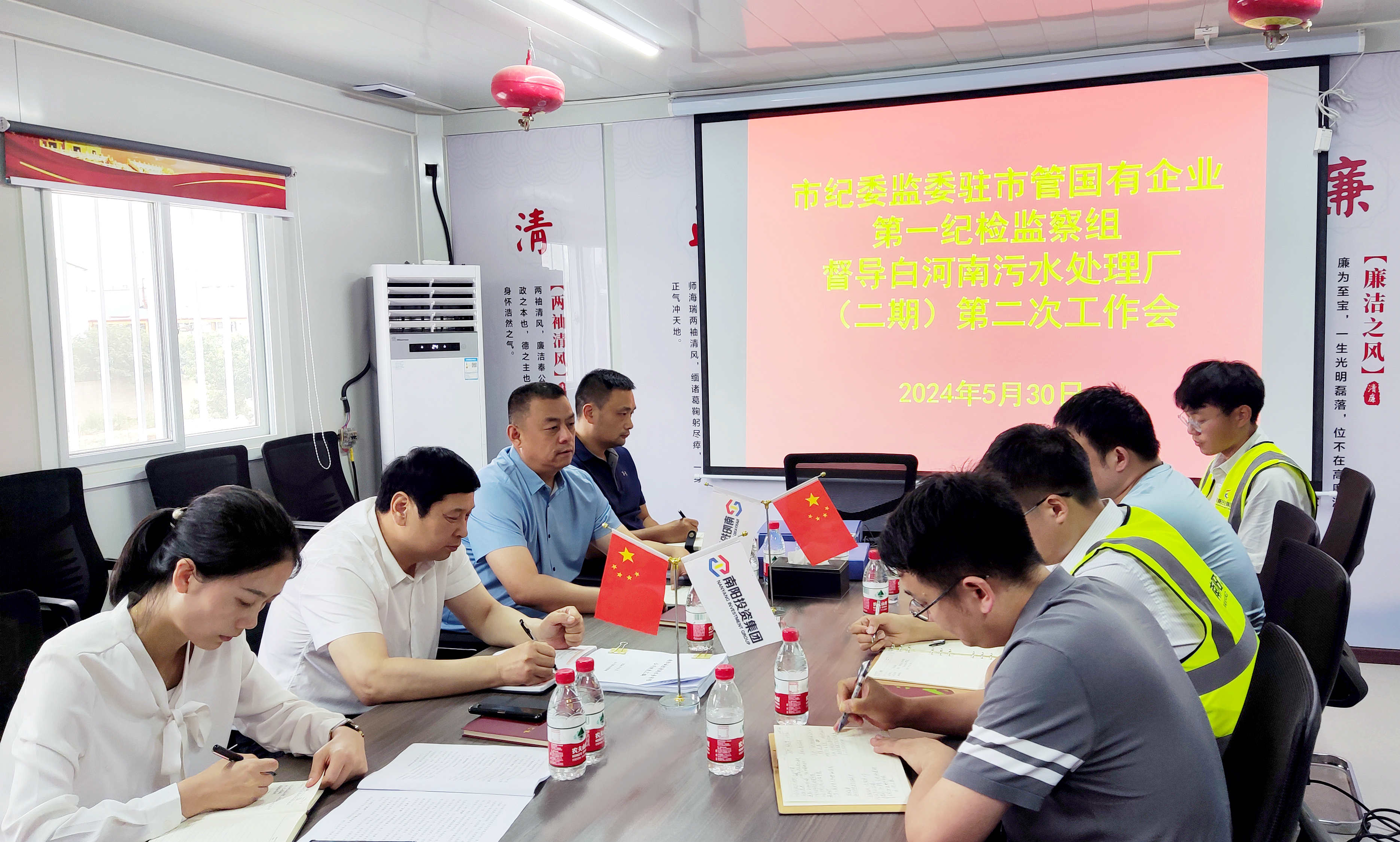 5月30日,市紀委監(jiān)委駐市管國有企業(yè)第一紀檢監(jiān)察組組長馬馳、副組長于智博一行前往白河南污水處理廠(二期)項目調(diào)研清廉工程創(chuàng)建工作,集團黨委副書記、監(jiān)事會主席韓玉奇陪同調(diào)研。