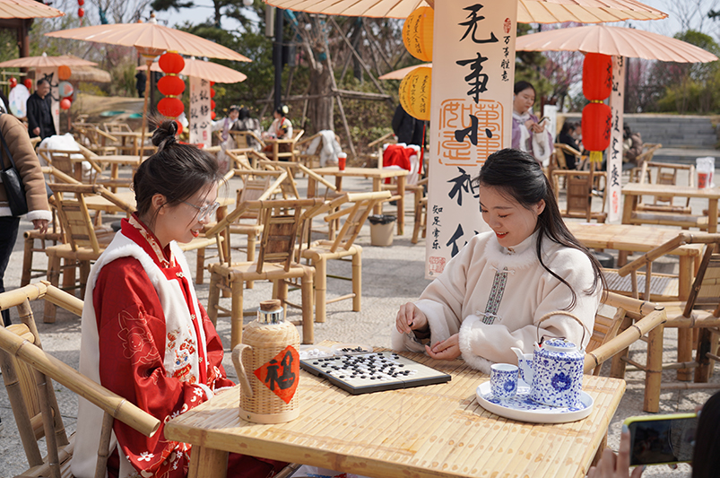 圍爐煮茶、品嘗諸葛飲、五子棋、投壺游戲……多樣的互動形式,讓大家在傳統(tǒng)文化中感受了別樣的節(jié)日氛圍。