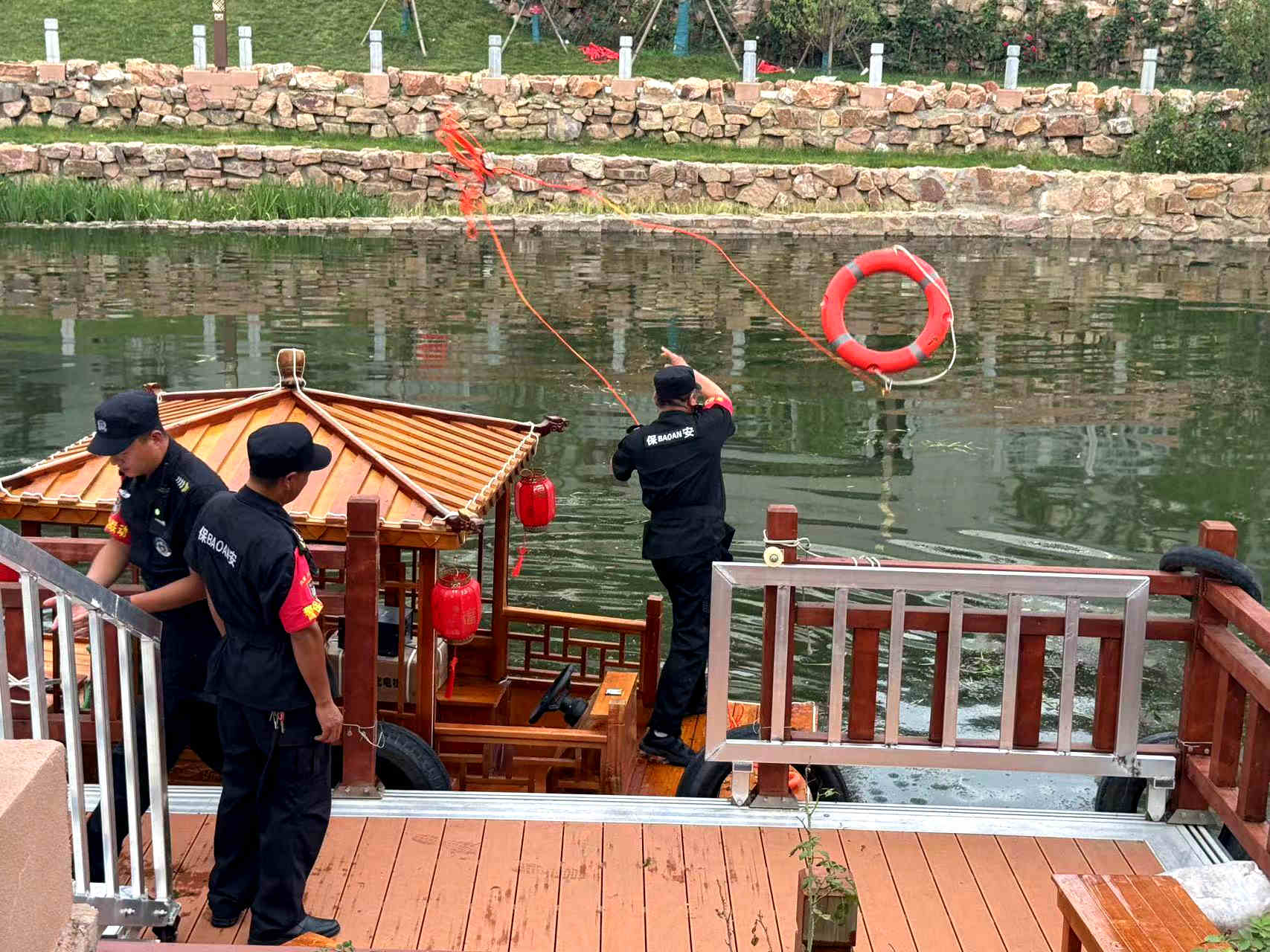為進(jìn)一步做好景區(qū)2024年安全保障工作,確保在游客高峰期活動(dòng)的安全、有序,在面臨景區(qū)內(nèi)可能突發(fā)的各類安全事故,確保一旦應(yīng)急事件發(fā)生時(shí)處理工作能高效有序地進(jìn)行,最大限度地減輕事故造成的損失,切實(shí)保障市民游客的人身安全,維護(hù)景區(qū)的正常運(yùn)作,醫(yī)圣文化園開展防溺水、防汛、消防演練與培訓(xùn),旨在提高景區(qū)運(yùn)營(yíng)應(yīng)急處理能力。