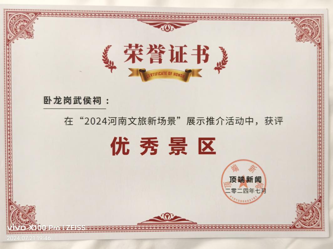 “點(diǎn)亮河南文旅新場景”頂端文旅創(chuàng)作者大會暨“商都晚風(fēng)”管城采風(fēng)活動日前在鄭州召開,臥龍崗景區(qū)憑借其豐富的文化內(nèi)涵、獨(dú)特的自然景觀、完善的旅游設(shè)施以及優(yōu)質(zhì)的實(shí)景演藝,從眾多參評景區(qū)中脫穎而出,榮獲“優(yōu)秀景區(qū)”稱號。這一榮譽(yù)不僅彰顯了臥龍崗景區(qū)在河南文旅產(chǎn)業(yè)中的領(lǐng)先地位,也標(biāo)志著景區(qū)在推動文旅融合、創(chuàng)新發(fā)展方面取得了顯著成效。