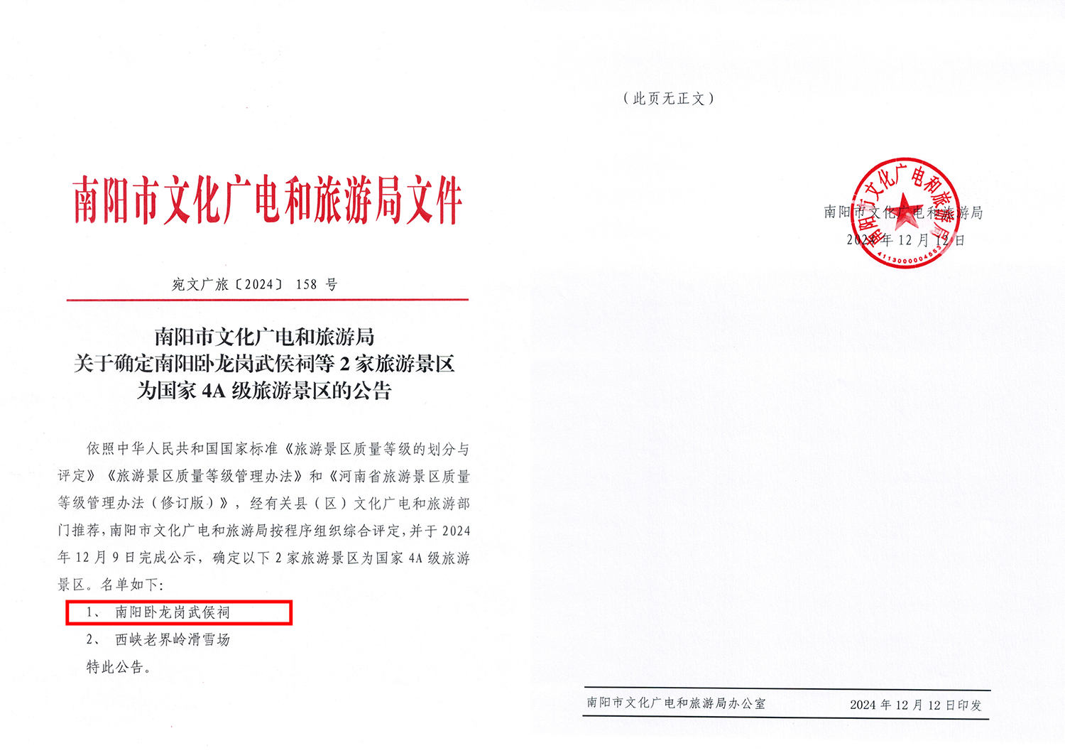 喜報(bào)傳來,振奮人心!依照中華人民共和國國家標(biāo)準(zhǔn)《旅游景區(qū)質(zhì)量等級的劃分與評定》《旅游景區(qū)質(zhì)量等級管理辦法》和《河南省旅游景區(qū)質(zhì)量等級管理辦法(修訂版)》,南陽臥龍崗武侯祠經(jīng)過綜合評定,被正式批準(zhǔn)為國家AAAA級旅游景區(qū)!