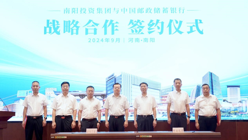 郵儲銀行省分行、市分行相關(guān)領(lǐng)導(dǎo)及南陽投資集團(tuán)黨委班子領(lǐng)導(dǎo)參加簽約儀式。