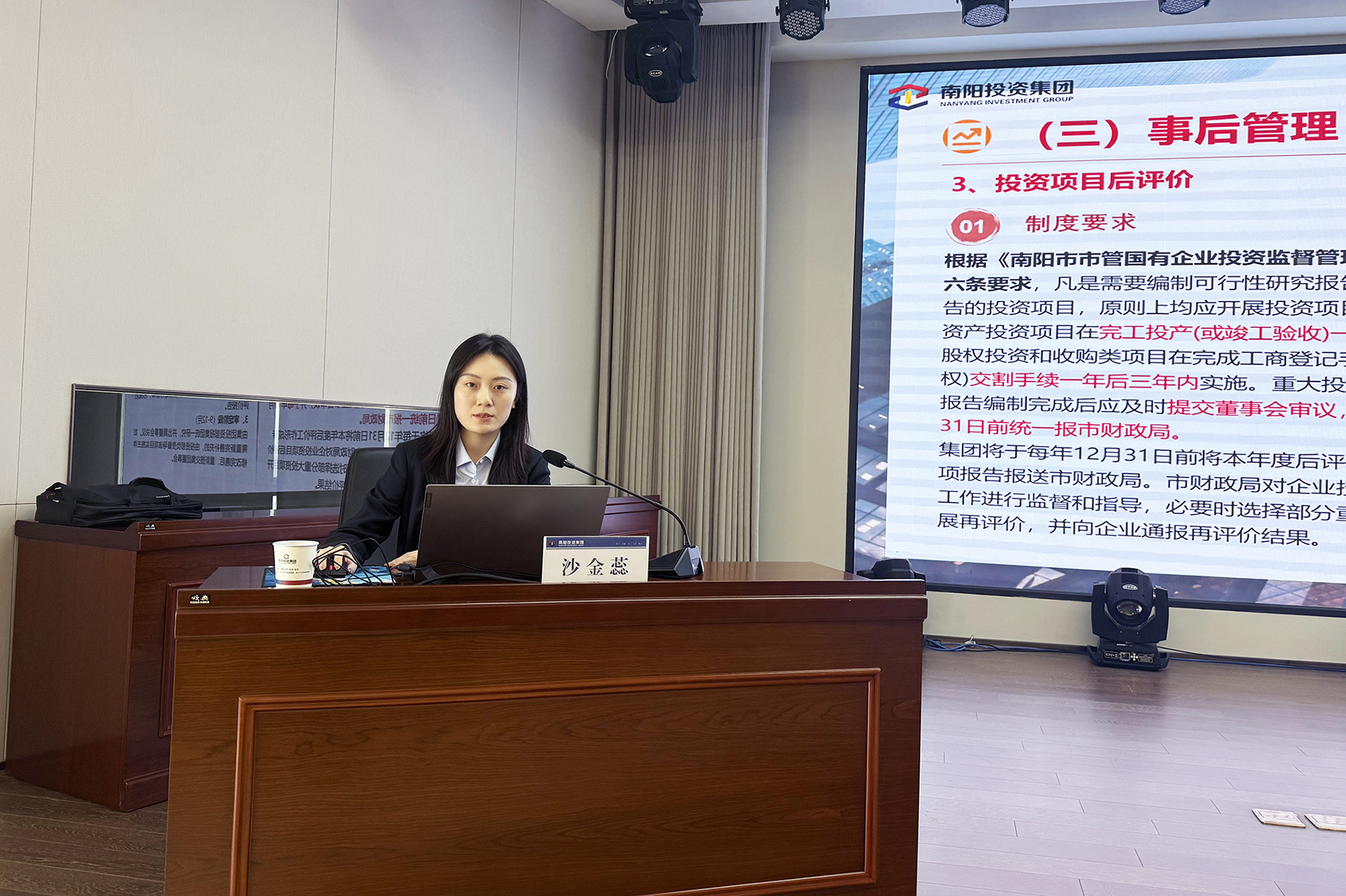 2月27日,南陽(yáng)投資集團(tuán)組織開(kāi)展“能力提升大講堂”第七講投資管理專題培訓(xùn),本次培訓(xùn)聚焦集團(tuán)投資管理制度體系,通過(guò)系統(tǒng)化解讀和實(shí)務(wù)指導(dǎo),著力提升投資決策規(guī)范化和風(fēng)險(xiǎn)防控水平。集團(tuán)中層干部、子公司負(fù)責(zé)人及相關(guān)業(yè)務(wù)骨干共計(jì)80余人參加。