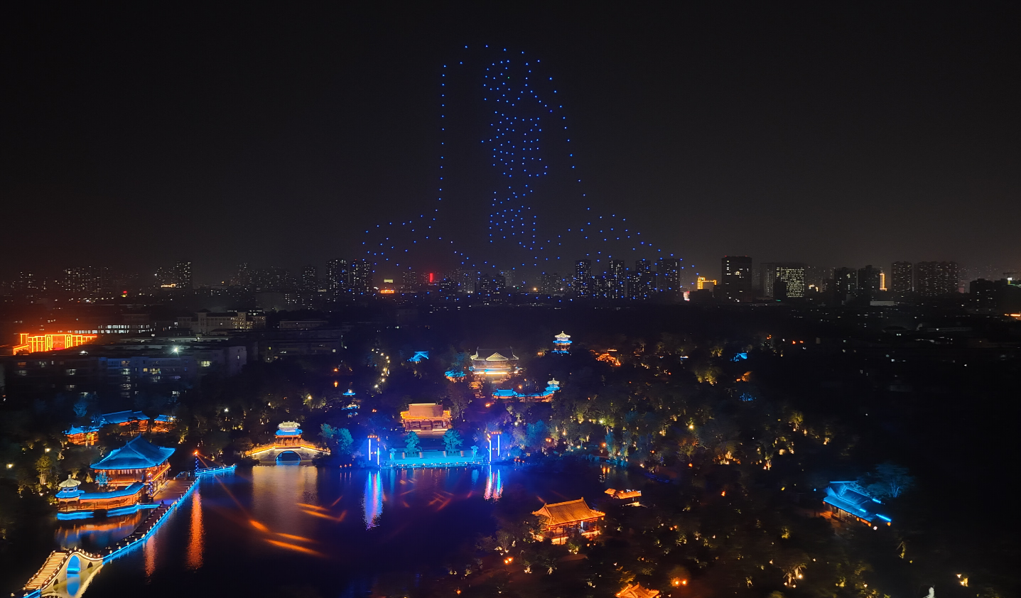 【星河為證·無人機(jī)編隊點亮臥龍夜空】