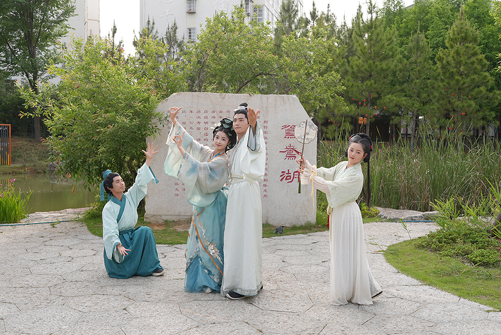 活動現(xiàn)場,漢樂演奏與書法展演相映成趣:古琴曲蕩氣回腸,書法家肆意揮毫,墨香與茶香交織,重現(xiàn)了三國時期的雅集盛景。這場穿越千年的集體婚禮,不僅是對傳統(tǒng)婚俗的致敬,更成為臥龍崗“以文化人、以文潤城”的生動注腳。
